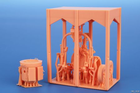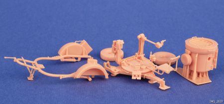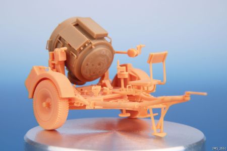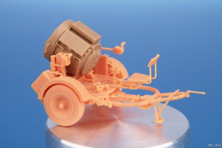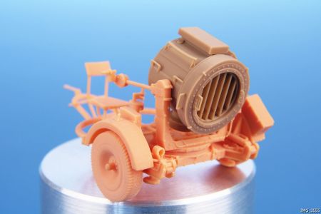 German WW2 searchlight with 60cm parabolic reflector. Used both by the Luftwaffe and Wehrmacht to search for enemy aircraft during night raids as well as to illuminate airfields at night. The kit including the Sd.Ah51 transport trolley is 3D printed. The assembled searchlight can be put on the trolley and removed again. The device was also used after the war by the Czechoslovak Army, alongside other captured ex-German armament, and it was known as the 60N Searchlight.