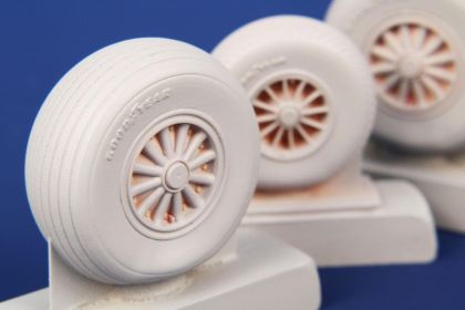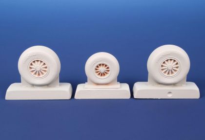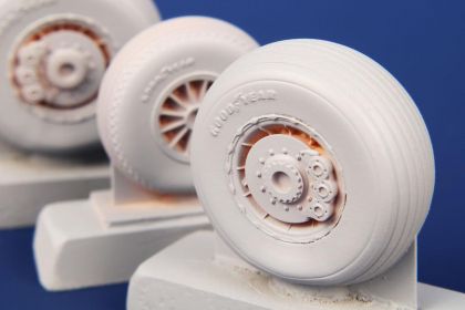 Finely detailed resin cast wheels for the ICM model of the US-made A-26 ground attack and bomber aircraft.