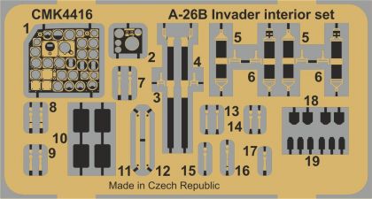 Detail resin cockpit with photo etched parts designed for the new model from ICM. It brings much better levels of detail for the model of the US ground attack and bomber aircraft. The cockpit roof also makes the nose gear bay ceiling.