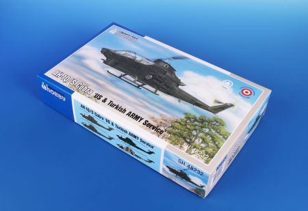 Our model can boast about possesing very nice levels of detail throughout and comes on as many as nine grey styrene sprues and one with clear parts. The decal sheet offers markings to enable the modeller to build one of four machines. Two of these are standard olive-overall US AH-1S Cobras and one of them sports the well-known bunny emblem on its dog-house and the other one flew with the Massachusetts National Guard, then there is one dark green US AH-1Q airframe and lastly also a Turkish Cobra in rather striking camouflage scheme consisting of three colours. excelentní detailní model.