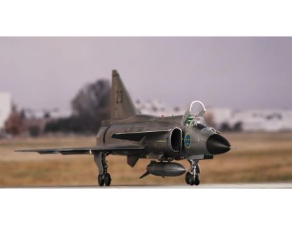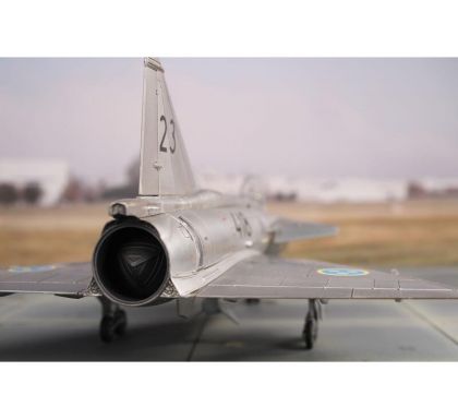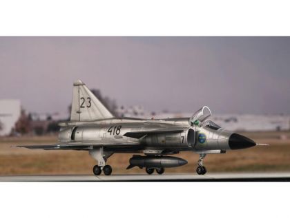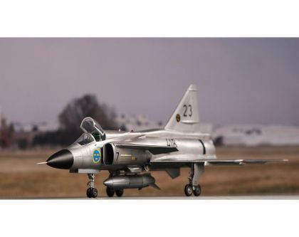 The SAAB 37 Viggen was simply an aircraft well ahead of its time. Rather unorthodox solutions brought by the designers not just allowed to meet the requirements, they also caused that the Viggen even exceeded them in a couple of respects. The Swedish Air Force placed order for several versions of the aircraft which would comprise the same basic airframe and would differ by additional equipment based on the role the version should operate in. The type was powered by a Volvo RM8, a licence-built Pratt & Whitney JT8D airliner turbojet fitted with the afterburner chamber and thrust reversers. This, along with the twin-delta wing allowed for excellent performance during take offs and landings especially on short airfields. The Viggen also featured a folding tail fin which improved the handling of the aeroplane on auxiliary airfields, enabled very easy handling during while towing the airplane into the hangar and also contributed to better concealment of the plane during operations off non-standard places. The type’s avionics was also among the very top a the time, the Viggen was the first military jet to feature an onboard computer with integrated circuits. The version first introduced to service with the Swedish military was the AJ37 Viggen, followed shortly by the SK37 two seat jet trainer, the SF37 recce version fitted with cameras in the modified nose section and the SH37 anti-shipping variety with different type of avionics and capable carrying a dedicated armament. Around ten years after the initial version had been introduced into the service, a second generation of the Viggen, the JA37 fighter started to emerge from the production line.