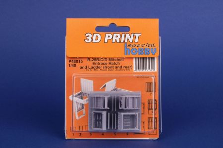 3D-printed air intakes, both the front and rear ones, that are designed to fit B-25 kits produced by Accurate Miniatures or as reboxed by Revell, Italeri and Academy. While the original kit offers the open entrance hatches, the surrounding internal area is left empty. Our set brings much better detailed hatches with steps, but also the entrance frames and interior doors that are completely missing in the kit.