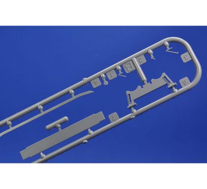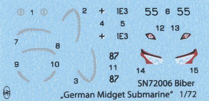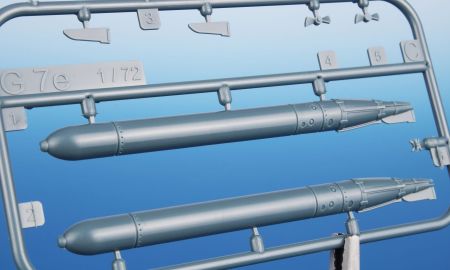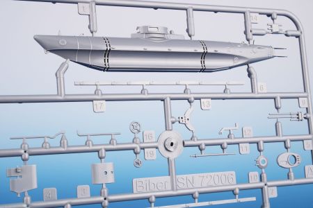 The kit is 3D designed and injection moulded using metal moulding blocks. The kit’s components come on two grey styrene sprues and one with clear parts. The A sprue offers the fuselage halves, B sprue has the torpedoes. The decal sheet brings markings for four overall grey Bibers and one bearing a camouflage scheme consisting of four colours. The latter and also one grey Biber were also decorated with a shark mouth. The rest of the machines in the kit have only numbers on the tower.