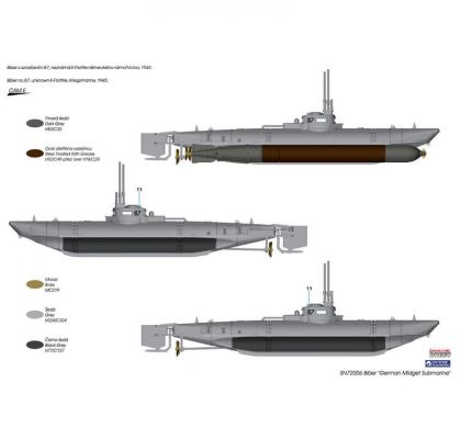 The original idea of the Biber sub came from Korvettenkapitän Robert Bartels and first prototypes were built and the production took place at Flanderwerke in Lübeck, the development being led by Hermann Bunte. Allegedly, Bartels was influenced by captured British Welman W46 midget sub. The Biber’s displacement was 6.6 tonnes, on the surface it was powered by a 32 HP Otto Blitz petrol engine and while submerged, the propulsion was provided by a Siemens SSW GL231 electric motor. The Biber could submerge down to 20m, in emergency to 30m. It could carry either two G7e torpedoes or mines. The hull was so diminutive that its operator (only a crew of one was possible) did not have much space in the conning tower.