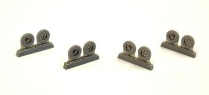 This set offers new and neatly detailed wheels and tyres with superbly defined tread for the Biber submarine transportation trailer. The master parts were 3D designed and produced using a 3D printer.