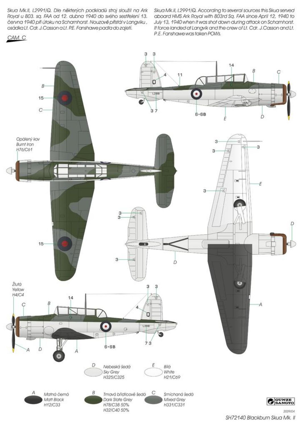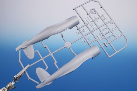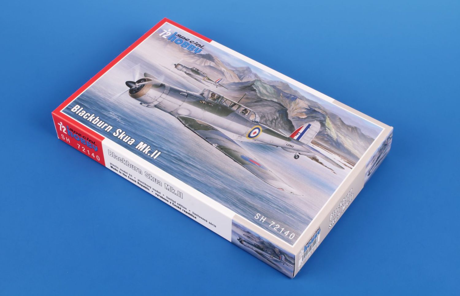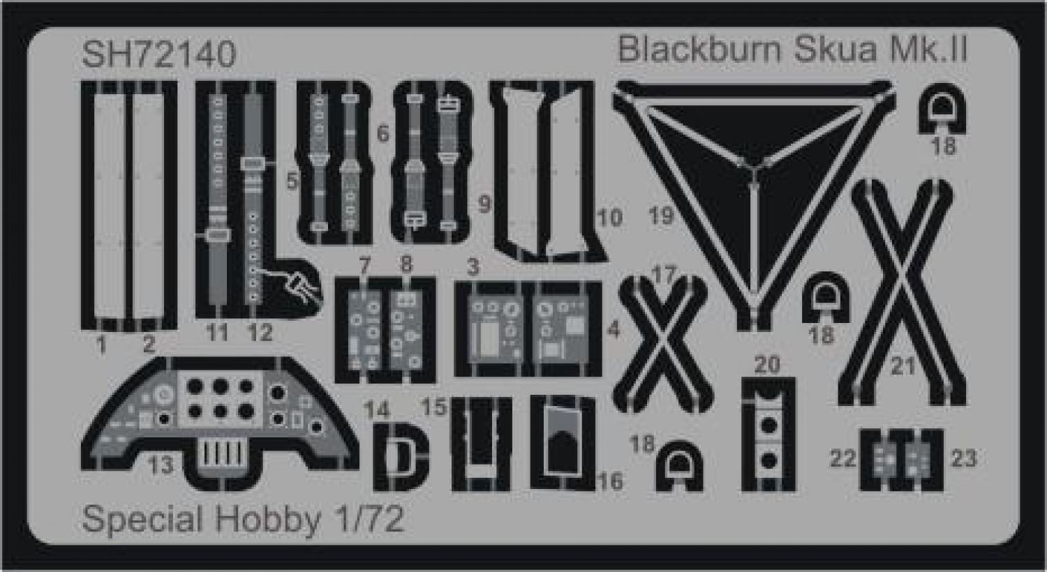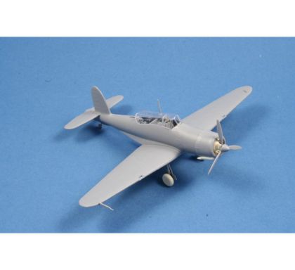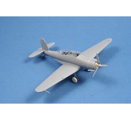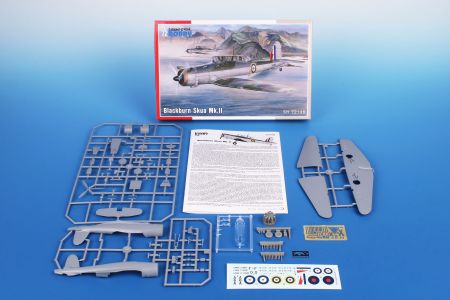 In 1934, the Air Ministry issued specifications O.27/34. They contained requirements for a multi-role aircraft for shipboard service. The aircraft was to be operated as a fighter as well as a dive bomber. A fighter for aircraft carriers in the British concept of the time was a two-seater aircraft designed for long operational flights and combat with enemy reconnaissance aircraft. Combat against enemy bombers, let alone fighters, was not envisaged. The B.24 project by the chief designer of the Blackburn company, Eng. G.E. Petty, was chosen as the best one. Petty designed an all-metal low-wing aircraft with folding wings and retractable landing gear. Under the fuselage, the aircraft had a arresting hook and a recess for a bomb of up to 226 kg. The first prototype, later named Skua Mk.I, took off on 9 February 1937. After successful tests, serial production began immediately. The production aircraft were powered by Bristol Perseus XII engines and were designated Skua Mk.II. They were delivered to fighter squadrons Nos. 800, 801, 803 and 806, and were also supplied to training squadrons and target towing units. Despite the rush in production, they were considered obsolete in the fighter role. With the outbreak of war, Skua aircraft quickly entered combat, operating from both aircraft carriers and land bases. In the first bombing attack on a German submarine on 14 September, two Skuas from a three aircraft section were lost to their own low-quality bombs. On 26 September, two aircraft from No 803 sqn shot down an enemy Dornier Do 18. This was the first confirmed British aerial victory of the Second World War. The Skua is closely associated with more firsts. During the Norwegian Campaign on 10 April 1940, sixteen Skuas sank the German cruiser Königsberg. No 800 Sqn., led by Capt. R.T. Partridge, and No 803 Sqn., led by Lt. W.P. Lucy, took off from Hatston in the Orkneys. This was the first successful air attack on a battleship during the Second World War. Skuas took part in the Battle of Dunkirk and on board HMS Ark Royal they intervened in the fighting in the Mediterranean. Here the Skua achieved another first, on 3 July 1940, a Skua from Ark Royal fought against fighters from a former ally, France. It became the first British aircraft to fight against the French and also the first to be lost in this undeclared war. The last Skuas were withdrawn from HMS Ark Royal in April 1941. They then served only with non-combat squadrons. Their combat career was relatively short, but despite the low performance of the Skuas as a fighter, several aces with more than five kills were achieved on them. As bombers they could have been much more successful, but they were not properly used by the Admiralty, to the detriment of the Royal Navy. We are returning the model to the offer after several years. Two ssprues made of grey plastic are joined by a sprue of clear parts, etchings and detailed PUR parts. Decals are offered for three machines in FAA camouflage scheme.
