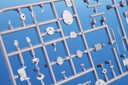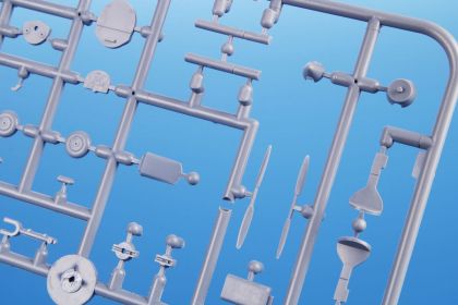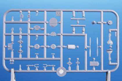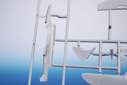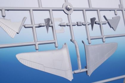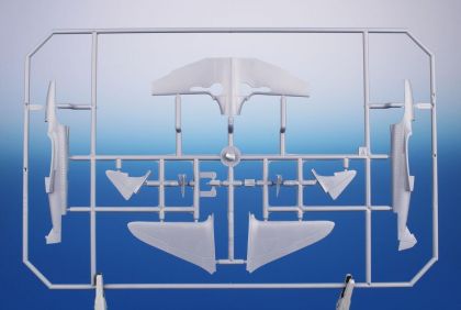Two sprues of plastic parts are completed by an injection-molded cockpit canopy. Since the machine did not carry any markings, the kit does not contain any decal sheet. The instructions offer two colour schemes, one of them fictitious.