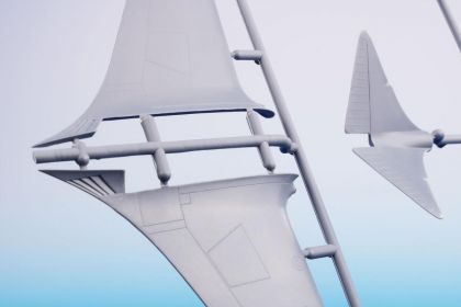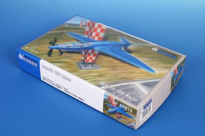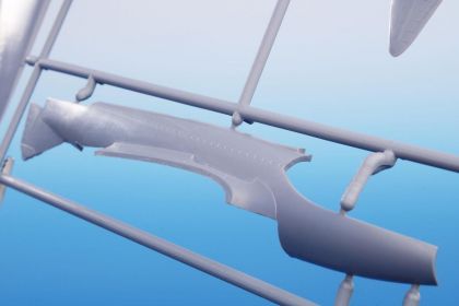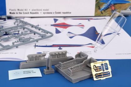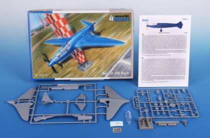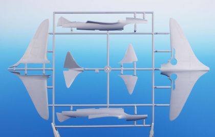 This kit contains two styrene sprues and a single one with clear injected canopy. As the machine was in blue overall scheme with no markings at all, the kit has got no decal sheet. The schemes are two though, the other one representing a fictitious scheme.