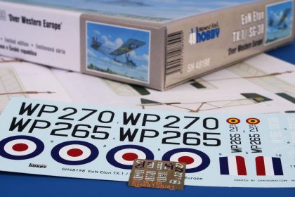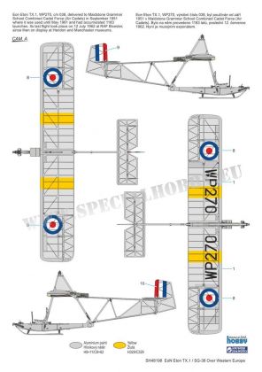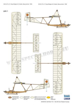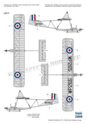 A model of the ex-German primary glider (Schulgleiter) wearing colour of post war users. In the UK, the glider was produced as the Eton TX.1 type. The decals and marking schemes offer two British gliders, and per one of Swedish, Belgian and a French schemes