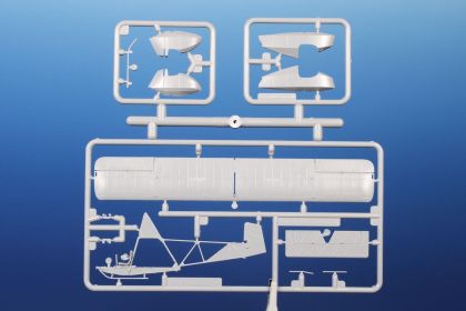 Model of the German SG-38 school glider wearing colour schemes of foreign operators. The SG-38 was the most widespread school glider of the inter-war period as well as during WW2. It was also manufactured in the UK as the Eton TX.1. The colour schemes bring two British planes, and a Swedish, Belgian and French ones. The box contains – a styrene sprue with nicely moulded parts, a sheet of decals and an instruction booklet.