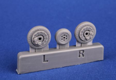 New undercarriage wheels with excellent levels of detail for the 1/48 F6F-3/6 Cougar kit. The original kit items have some serious flaws. Our new wheels have the correct brake detail as well as nicely weighted tyres.