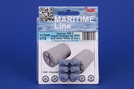 3D-printed depth charges designed for the Kriegsfischkutter model as well as for other German 1/72 vessel models. Compared with the styrene ones these possess much better detail levels and come in one piece each so you do not need to assemble the charge from four separate parts.