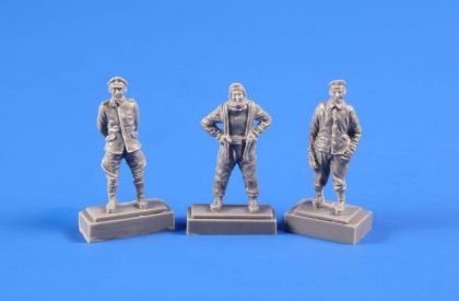 A trio of standing figures, two officers and a mechanic of the Imperial German Air Service. One of the officers bears striking resemblance to Hermann Goering and wears his flying suit, the second of the officers is in the uniform and the mechanic is portrayed in workwear.