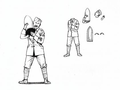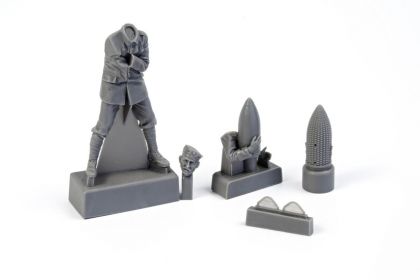 CMK bring you a figure of a German WW1 soldier portrayed while loading a shell into a 25cm mortar (CMK offer this resin cast weapon as RA 058, German WW1 25cm schwerer Minenwerfer / Heavy Mortar). The soldier is holding the shell on his shoulder. Among the cast parts, you will find also a wicker basket used for the shell storage. The head and both arms of the figure come as separate parts.