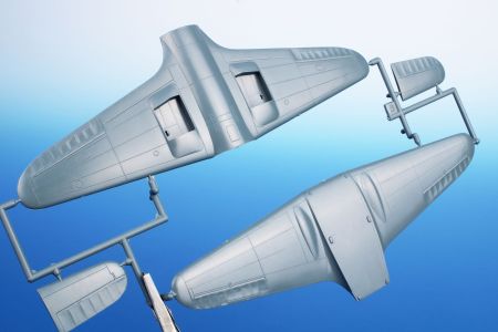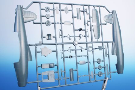 The kit consits of two grey styrene sprues, a clear plastic sprue with the canopy, fret of etches and a sheet of decals with markings for the prototype in two respective forms.