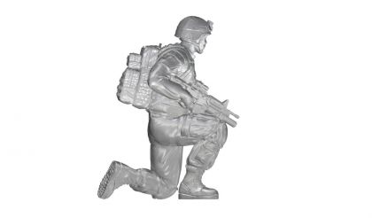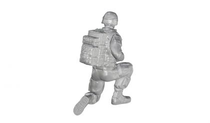 A figure of a US Army soldier of the Infantry Squad 2nd Division taking part in a patrol somewhere in Afghanistan. The soldier is kneeling, has a MOLLE ruck sack and is pointing his SOPMOD M4 carbine forwards. The soldier’s equipment is exquisitely depicted – the helmet with ballistic goggles and also the bulletproof vest. The figure is suitable not just for the M1126 model, and the parts of the figure have been 3D designed.