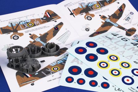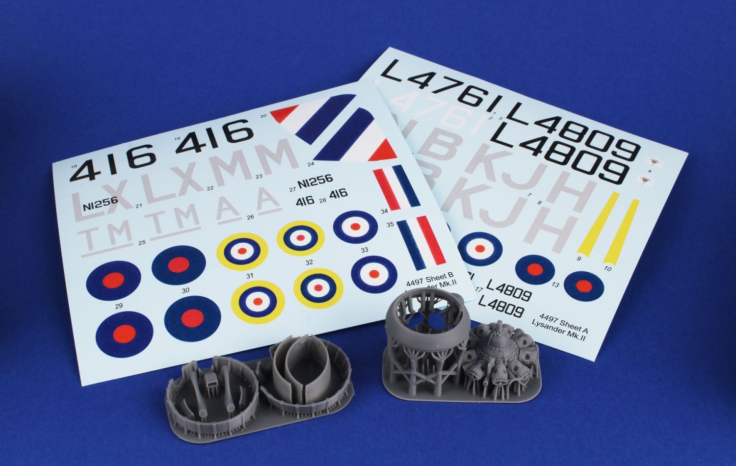 The Lysanders Mk.I/III were powered by variants of the Bristol Mercury engine, but the Lysander Mk.II version got the Bristol Perseus radial engine. This engine also featured a different cowling. All this, along with decals, is offered in our 3D printed set. The decals feature three RAF aircraft active in Europe, the British isles, and one from the Canadian RCAF.