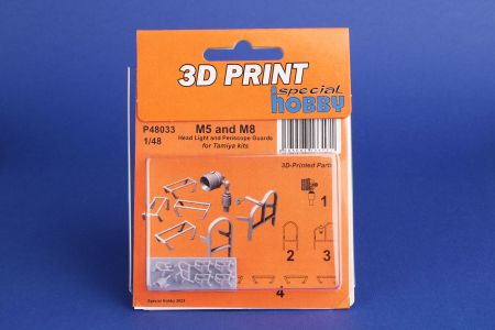 The M5 Stuart tanks or the self-propelled M8 howitzers based on the same chassis very often had their periscopes protected by welded-rod guards. And as it is almost impossible to have such guards made from injected styrene and those from etches do no look quite right, we have for you3D printed ones now which can be used on your Tamiya kit.