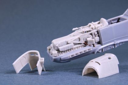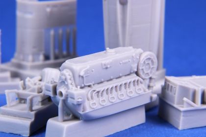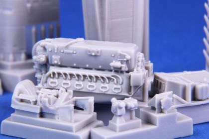 Detail set of the DB-601 engine without its covering panels, fits the new Special Hobby’s model kits and Eduard’s rebox. The engine cowl panels and armament panels come along in the set.