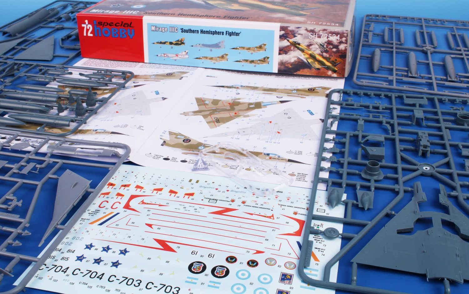 - also available – pre-cut masks M72041, accessory sets Q72401Mirage IIIC Wheels, Q72402 Mirage IIIC Mirage IIIC Atar 9B Engine Nozzle and Q72403 Mirage IIIC Seat