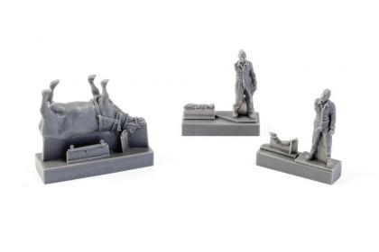 This set contains two groundcrew members of the Luftwaffe with a draft animal ready to tow a Me 163 Komet on the airfield (the figures have been sculpted based on a period photo. However, a photo of a Bf 109G being towed by such poor animal also exists). The cow offered in our set can be used in any other type of diorama, too.