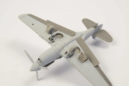 Tailored to fit the new Special Hobby P-40 kits of versions E, K, M and N, but definitely not only these, is this set of undercarriage wheel wells. It offers both the wells with visible internal wing structure and the more often seen variety of wheel wells with canvas covers. The set brings also the canvas covered tailwheel well.