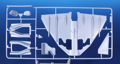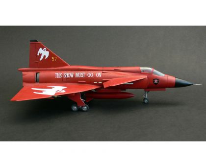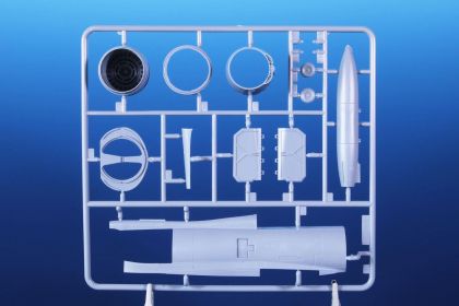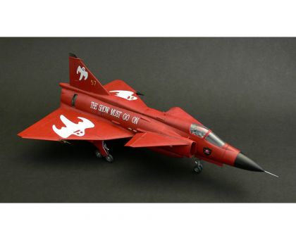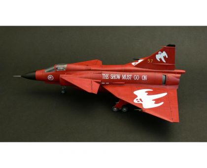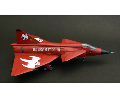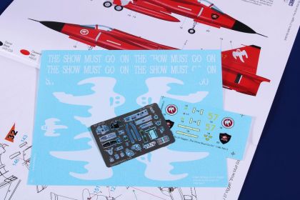One of these modernized machines got a special red anniversary scheme and was also embelished with “Show Must Go On” inscriptions and ghost cartoons and is now offered in our model kit which comes on seven grey styrene sprues with one clear with canopy parts and all that is topped by a pre-coloured photo-etched set.