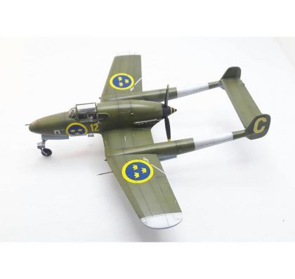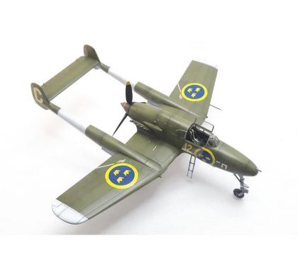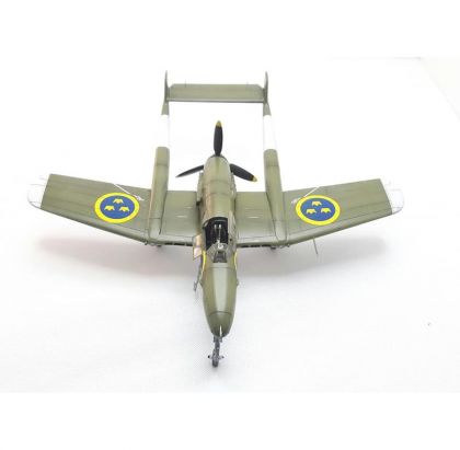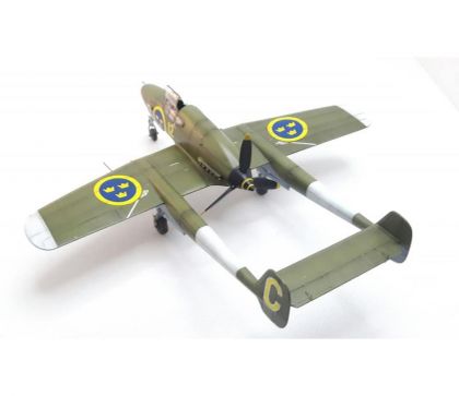 During the Second World War, Sweden sought to ensure its neutrality, besides other means, also through a powerful air force. The Flygvapnet (Swedish Air Force) ordered 264 Seversky P-35A US-made fighter aircraft, designated the J-9 in Sweden of which were 60 delivered and also the Vultee Vanguard, to be designated the J-10, of which were none delivered. However,after the US was drawn into the war by the Japanese attack, the US government imposed an embargo on further weapons exports and so Sweden was left with the necessity to take care of its future armament itself. During the war, Sweden managed to design and introduce into service two indigenous fighter types. Apart from the downright auxiliary FFVS J-22, it was the SAAB J-21 which was that company’s first fighter type. Its designer, F.Wänström created a machine of unorthodox construction with two tail booms, a nose-type undercarriage and a pusher engine. The machine offered a perfect view forward to its pilot, the armament was conveniently placed in the nose section, the manoeuvrability was excellent as was the ground handling due to the nose type landing gear. There were some disadvantages too, though, namely problems with cooling the power unit which were synonymous with the type all along its flying career. The first J-21A-1 production machines went to serve with F-9 wing only after the war in Europe had come to the end. The next production batch machines of the J-21A-2 version differed by the armament used and they were operated by wings F-12 abd F-15. The final batch was manufactured in the ground-attack version in 1948 and was known as the A-21A-3. In the fighter role, the J-21 became obsolete rather quickly, but its excellent manoeuvrability at low altitudes and perfect stability during fire made the type a perfect platform for ground attack roles. The J-21A airframe was also the basis for Sweden’s first jet engine-powered type, the J-21R. At first, it was expected that placing the licence-built De Havilland Goblin jet engines into the aiframe should be without any major trouble, but soon it became clear that the improvements were going to be so massive that only about 50% of the airfame can be taken from the piston type. Despite that the new J-21R was very similar to its older sibling. A total of 299 piston engine powered J-21 was built plus 120 more of the J-21R type.