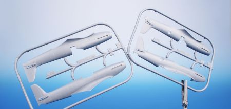 The kit set comes on five styrene sprues joined by one with clear parts. The fuselage halves come in two styles, too, to depict the differences between the fighter and figher-recon airframes. The decal sheet caters for two machines as operated by No.1832 NAS RNVR at RNAS Culham. One of them is a fighter, the other one a fighter-recce FR Mk.46 machine.