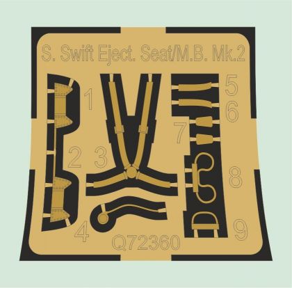 This ejection seat was used not just with the Swift, you can add it some other models too. Detailed resin cast of the seat comes with etches portraying seat belts and ejection handles. The latter is in two styles as seen in service, one as fitted in the Swift, the other for the rest of aircraft using this hot seat.