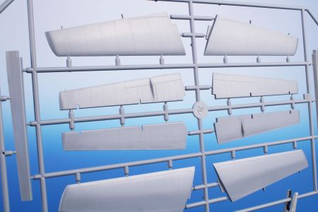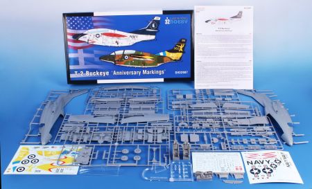 The kit set comes on no less than eight grey styrene sprues joined by a sprue with clear parts, resin items and etched details. The decal sheet caters for markings for one white-blue-red US Navy airframe and one from Greece with colourfuly painted empennage.