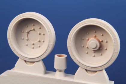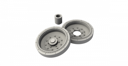 A set of solid track wheels for the Tamiya T-34/85 kit, which offers just the type of wheels literally oozing with lightening holes in them. However, the real tanks very often had both styles of the wheels at the same time, or perhaps even just the solid ones. It depended on the production plant.