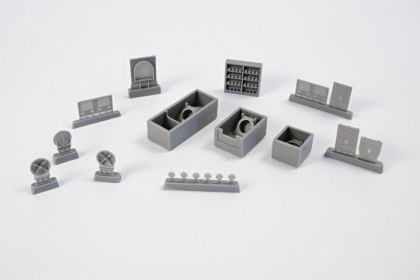 In the early years of the war, enemy’s submarines would attack and sink solitary ships with their guns while emerged on the surface, thus saving their precious torpedoes. This set brings open deck hatches and open 105mm cannon ammo box. The parts were 3D designed and masters produced on a 3D printer.