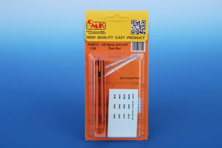 Modern style tow bar as used for US Navy aircraft on carriers. The tow bar is universal as is the real one, too. The set also contains safety chain and a decal sheet.