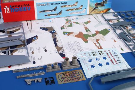 The kit contains four sprues of plastic parts, a sprue of clear parts, etches and resin cast parts. The decals offer markings for four IAF machines, but in five camouflage schemes. One of the machines flew in two different types of camouflage, one in the natural colour of metal.