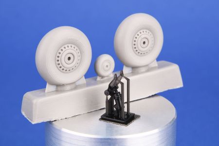 For the re-released Special Hobby Wellington model is prepared this new and better-detailed resin main wheels and tail wheel. The real leg is 3D-printed using special tougher material.