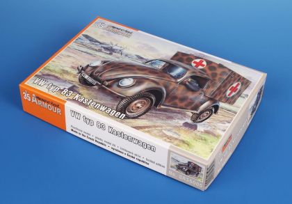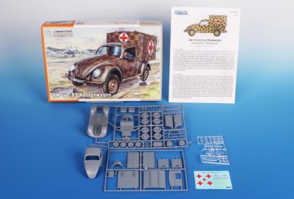 In the late 1930s on Adolf Hitler’s direct impulse, Ferdinand Porsche, a German automotive designer was developing a car suitable for wide masses of Nazi Germany. This development gave birth to the so called KdF-Wagen vehicle, named after the Kraft-durch-Freude slogan, literally meaning Strength Through Joy, the car to be better known as the VW Beetle in the post war era. In 1938 as the war was getting closer and closer, the development of military versions began, producing two main branches of the type, the first of which was the Typ 82E with rear wheel drive and the other was the Typ 877 with all four wheels drive. These vehicles were widely used by Third Reich’s military and other state sectors too all the way through the war. Many various subversions, conversions of the main type and also various improvements and upgrades arose during the war too, some of them being for instance a wood gas drive conversion and others. One of the quite important subversions based on the Typ 82E was the series of Typ 83 and Typ 86 Kastenwagen vehicles, characterised by a box-shaped wooden superstructure mounted on the rear of the car body. The two Types differed from each other by having a different interior of their superstructures depending on the roles the vehicles were used in. The large internal space of the Typ 83 was mostly used for mail transport with the Reichspost while the Typ 86 saw service as an ambulance car.