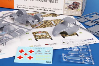 The model of the Typ 83 was once available under CMK label, cat.no T35018. But, as it has been sold out for a rather long time and modellers kept asking for it, a decision was taken to get the model back into our production. Now the model is to be available again as SA35005 within Special Armour range of kits. On opening the kit’s box, the modeller will get two sprues with grey styrene parts, the car body with its rear portion cut off to allow for the superstructure to be mounted on and also one sprue of clear parts. The decal sheet brings markings for two options, one grey-coloured mail transport car and one ambulance car with nice camouflage scheme.